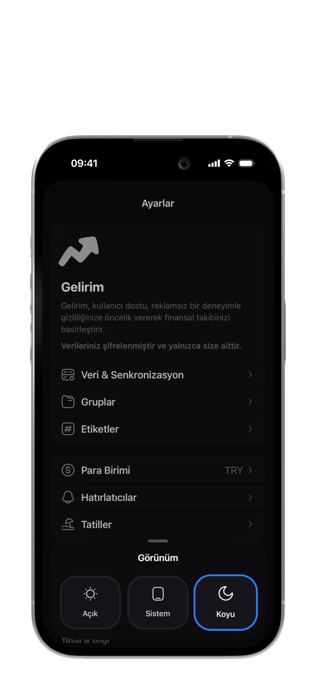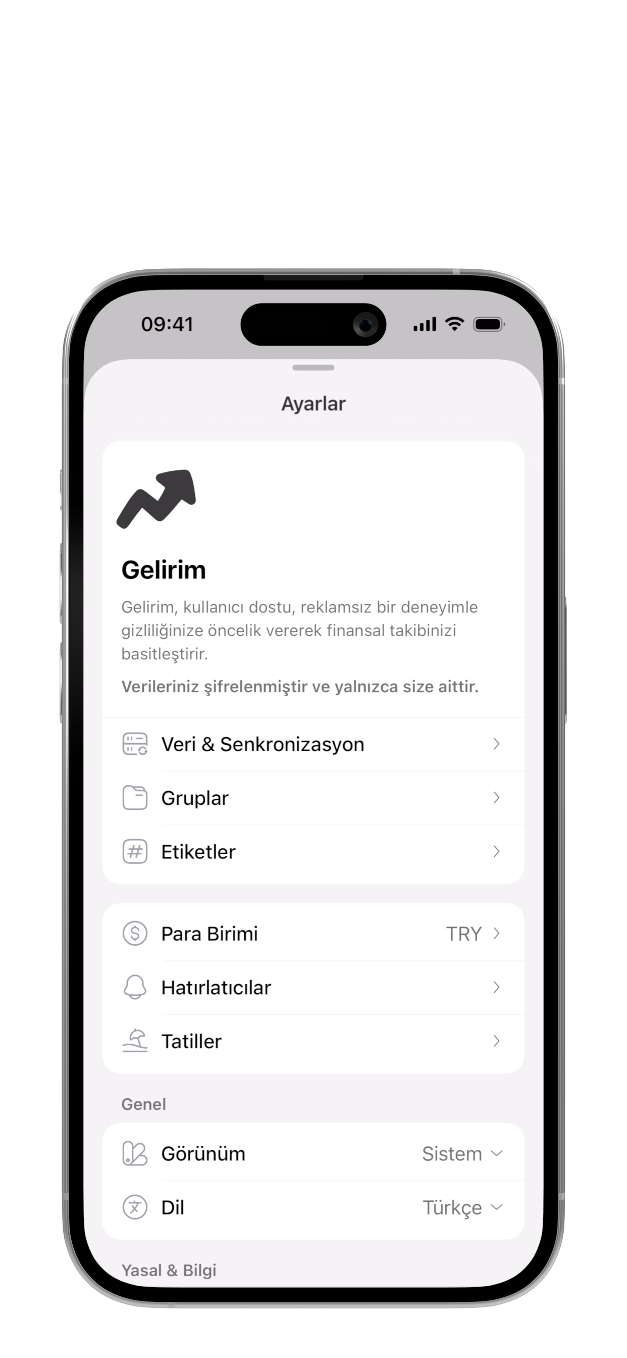 Gizliliğinizi ihlal eden uygulamalardan bıktınız mı? Gelirim'e geçme zamanı. Temel özellikler için abonelik ücretlerinden usandınız mı? Gelirim'e geçme zamanı. Karmaşık finansal takiple uğraşmaktan yoruldunuz mu? Gelirim'e geçme zamanı. Mali verilerinizin nereye gittiğinden endişeli misiniz? Gelirim'e geçme zamanı. Birden fazla cihazda takip yapmakta zorlanıyor musunuz? Gelirim'e geçme zamanı. Mali uygulamalardaki reklamlardan rahatsız mı oluyorsunuz? Gelirim'e geçme zamanı. Yatırım takibi istiyorsunuz ama premium planları karşılayamıyor musunuz? Gelirim'e geçme zamanı.