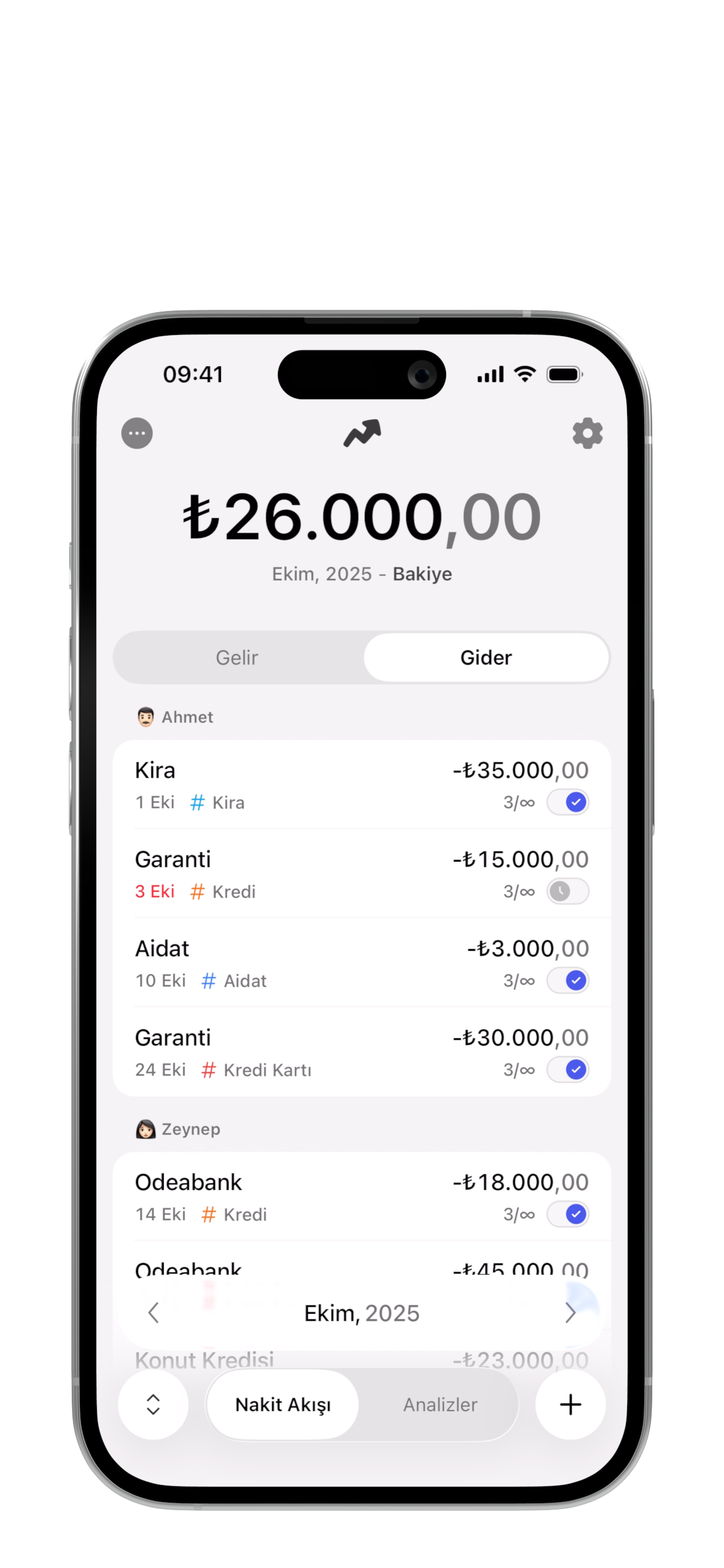 Kiradan tatile, kredi kartından kredi ödemelerine kadar her şeyi takip edin.