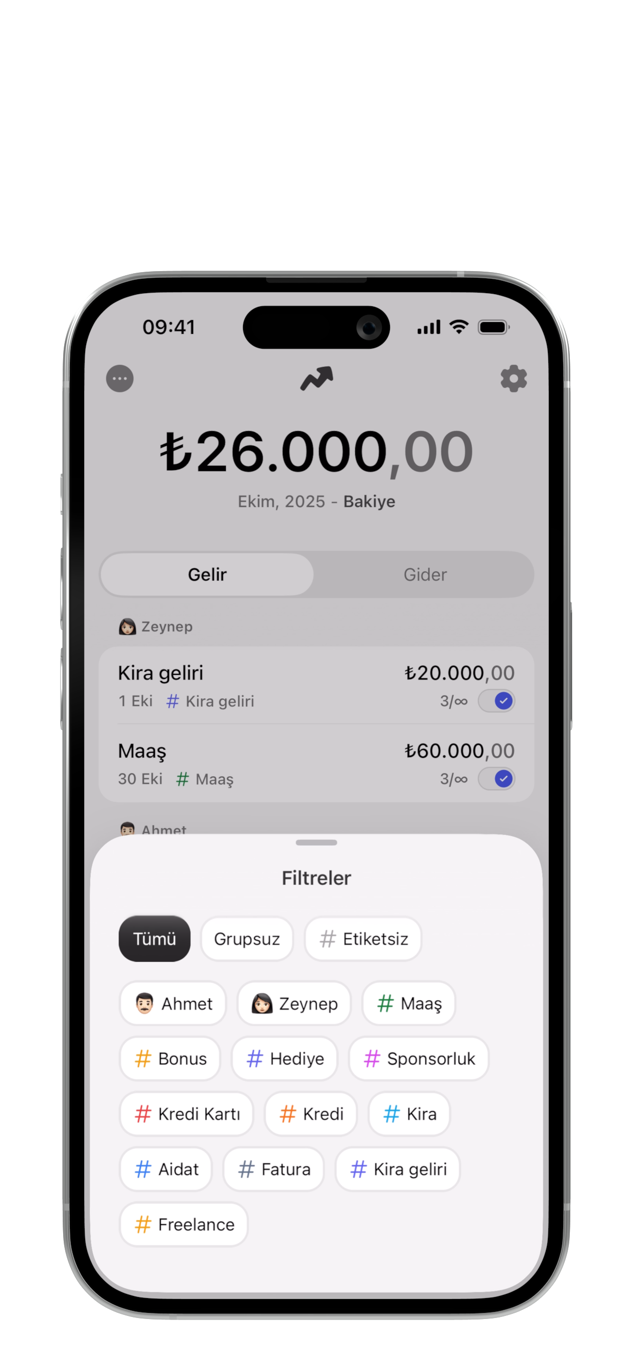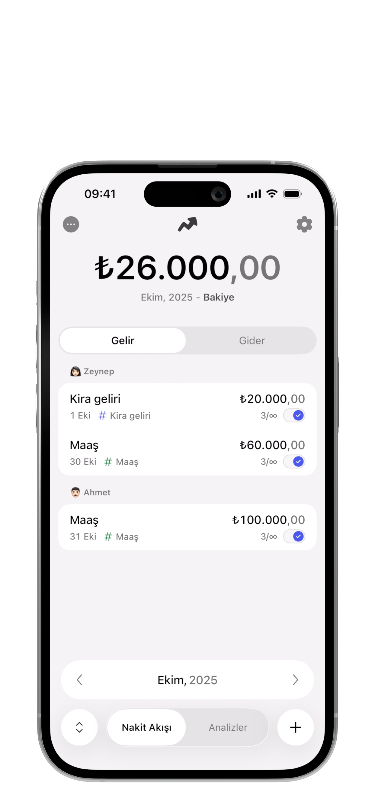 Maaş, freelance, kira geliri... Her türlü kazancınızı kaydedin.