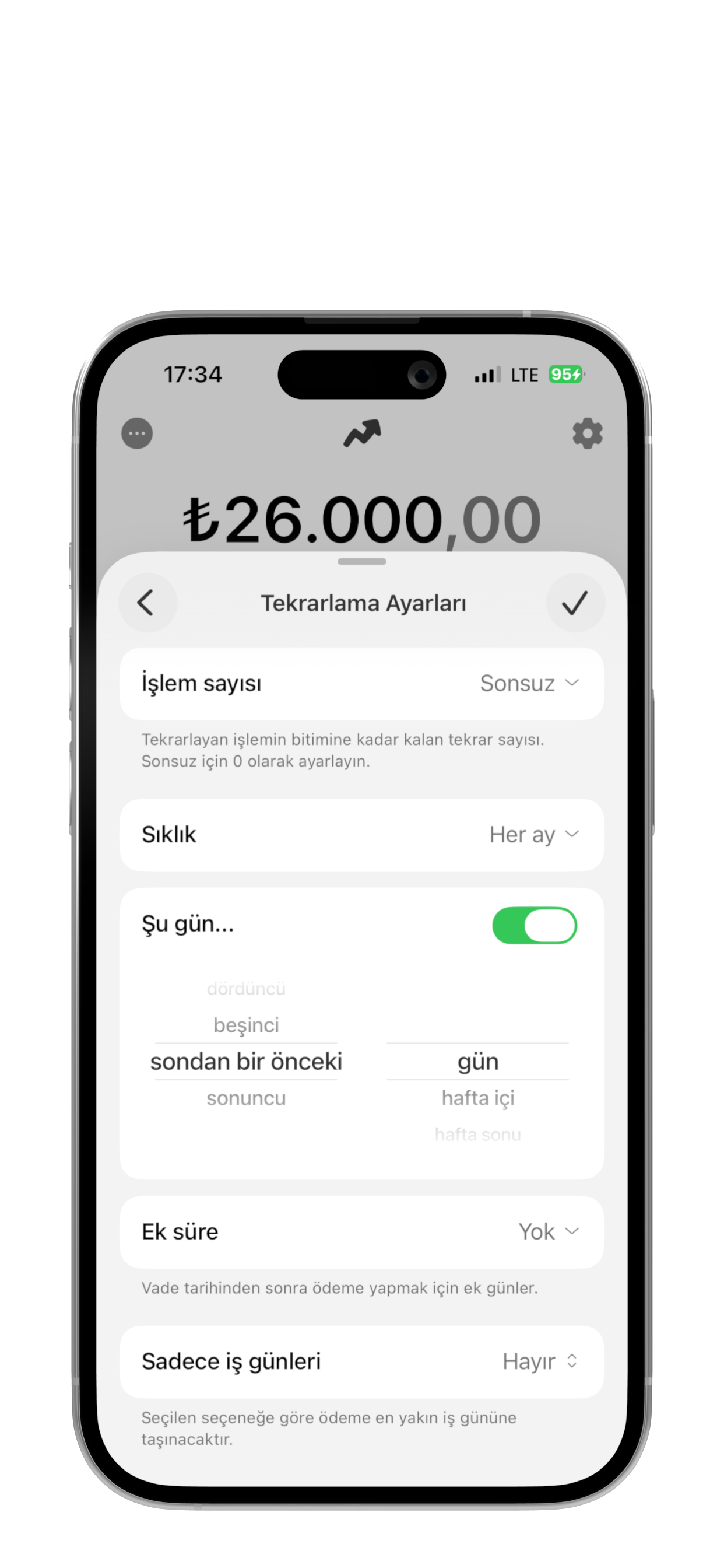 Ay sonunda ne kadar paranız kalacağını tek tıkla görün.